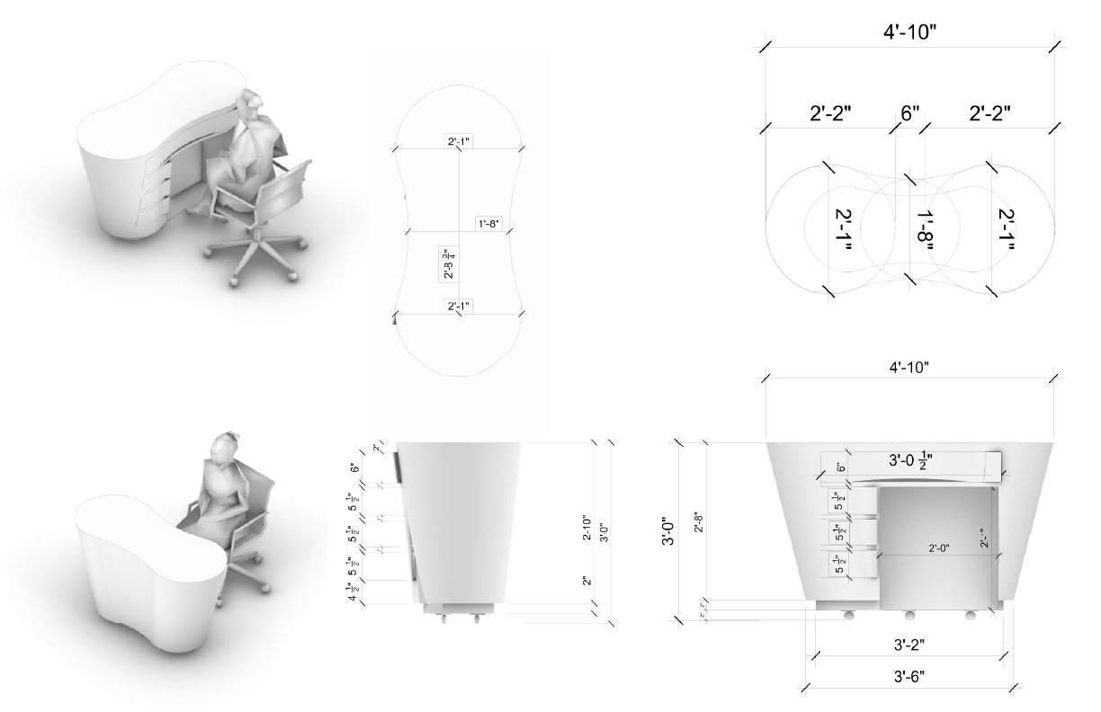 Custom desk was made to fit comfortably within the alcove while providing maximum drawer space. Added details include recess handles and casters.